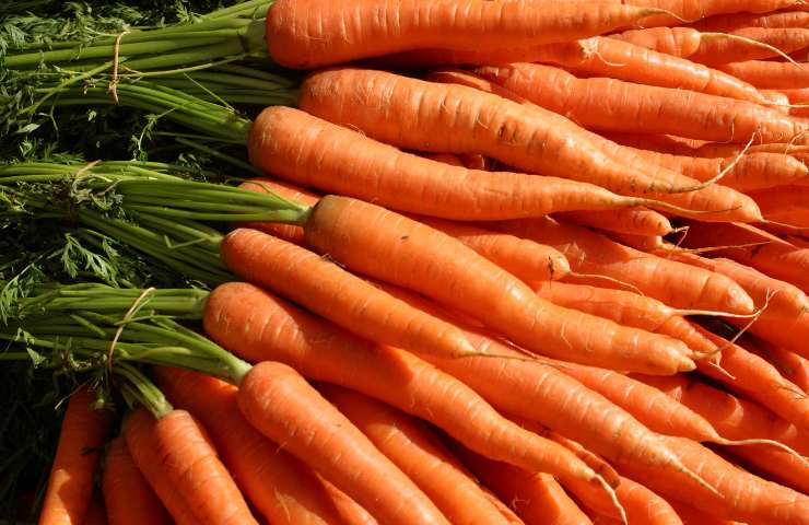 Laviamo bene le carote e le peliamo. Peliamo anche la patata, la laviamo e la tagliamo a dadini insieme alle carote. Poi prendiamo una padella e facciamo soffriggere con un filo di olio extravergine e lo scalogno tritato.
