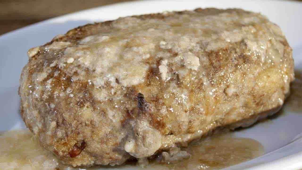 Quando il polpettone sarà rosolato bene da tutti i lati lo sfumiamo con il vino e aspettiamo che sia evaporato. Da lì continuiamo la cottura per circa 40 minuti, bagnando ogni tanto la carne con il fondo di cottura. Nel caso, aggiungiamo un mestolino di acqua calda quando necessario.