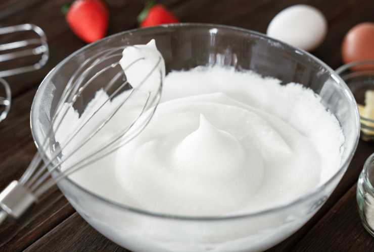 Ora, prendiamo gli albumi e mettiamoli all’interno di una teglia con carta forno, cercando di formare delle “nuvolette”. Con l’aiuto di un pennello, spennelliamo sopra i tuorli che abbiamo lavorato precedentemente. Infine, cuociamo in friggitrice ad aria per 8 minuti a 160 gradi, oppure in forno già caldo a 180 gradi per 8 minuti.