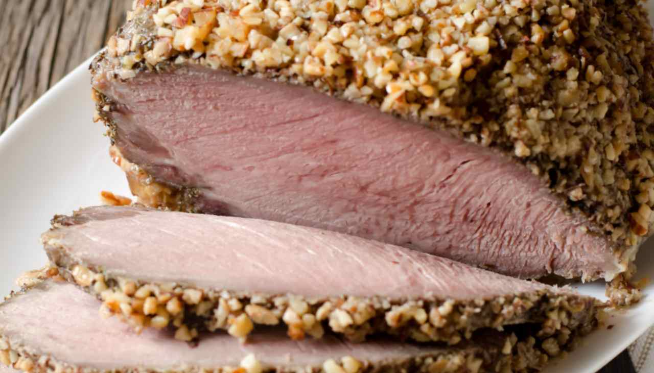Massaggiate la carne prima con l’olio e poi le spezie e ricopritela con una soluzione di albumi montati a neve mescolati con le mandorle tritate e tostate in padella per un paio di minuti senza alcun condimento. Adagiate la carne su una teglia ricoperta di carta forno e cuocete a 180° per 35 minuti circa.