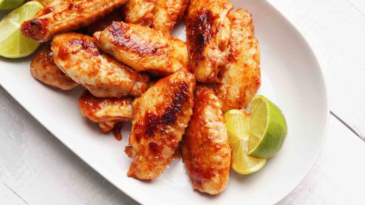 - Lavare le ali di pollo sotto acqua corrente e asciugarle bene con carta da cucina.