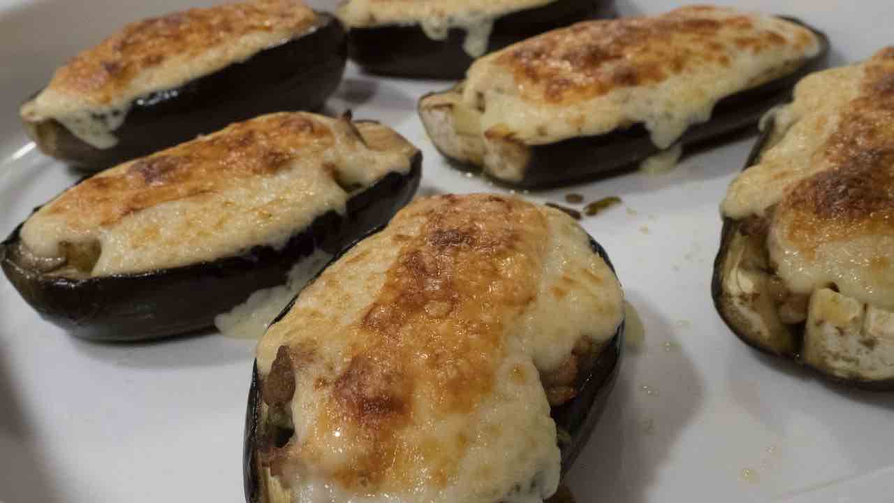 La preparazione richiede un po’ di attenzione nella fase iniziale. Svuotare le melanzane con delicatezza permette di ottenere barchette integre e pronte per essere farcite.