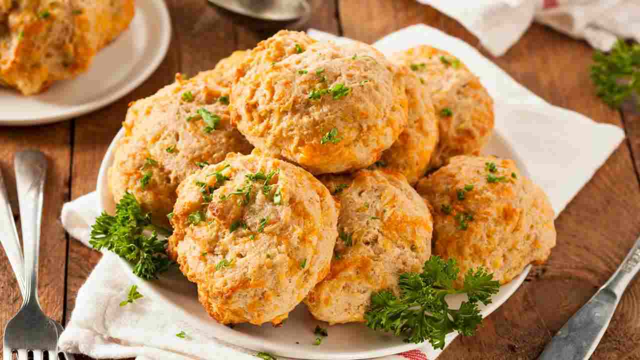 Sono biscotti salati, quindi ti danno la soddisfazione del crunch, ma non ti chiudono lo stomaco. E poi sono pratici: li prepari in anticipo, li conservi in un contenitore e quando arrivano ospiti o vuoi improvvisare un aperitivo, hai già la tua parte croccante pronta. In più, a differenza di tante cose da buffet, questi non soffrono se stanno sul tavolo: restano stabili, non si sciolgono, non si ammosciano subito. Gli ingredienti che ci serviranno sono solo i seguenti: