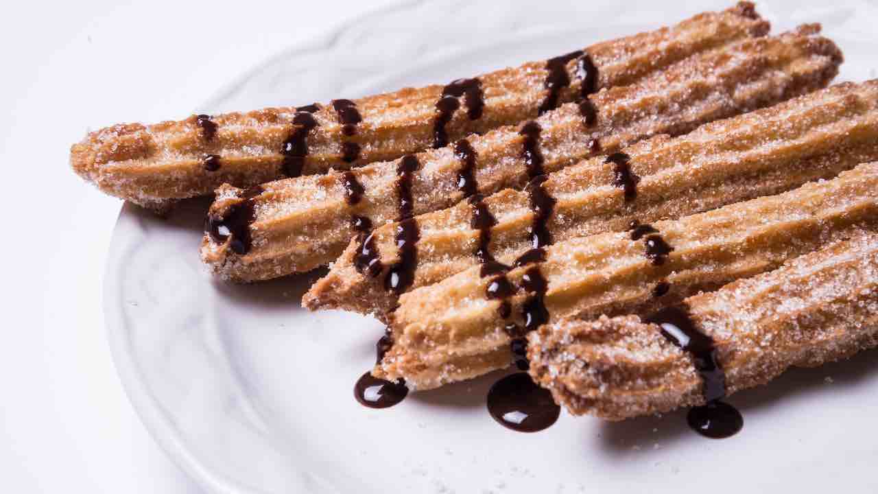 I churros spagnoli sono uno street food iconico: croccanti fuori, morbidi dentro e irresistibili se gustati caldi, proprio come quelli mangiati a Madrid.