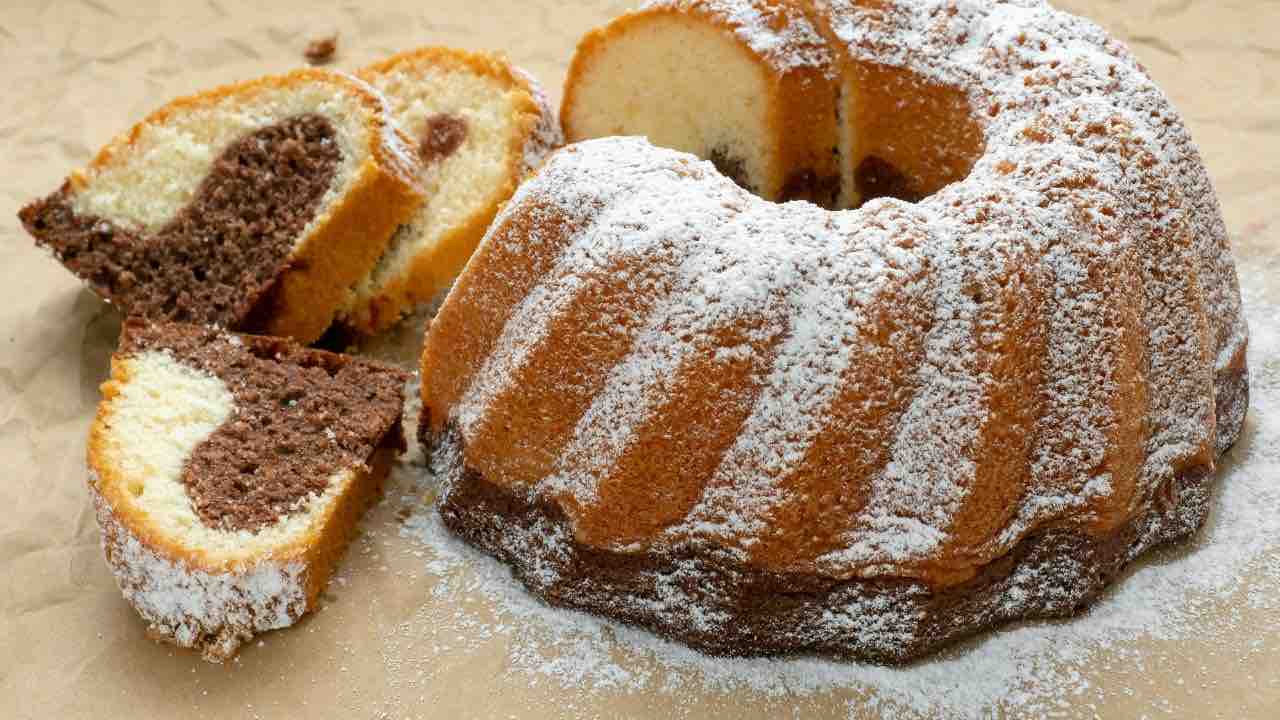 Soffice, alto e scenografico: il ciambellone bicolore è il dolce perfetto per iniziare la giornata con gusto, grazie al suo irresistibile contrasto tra impasto chiaro e cacao.