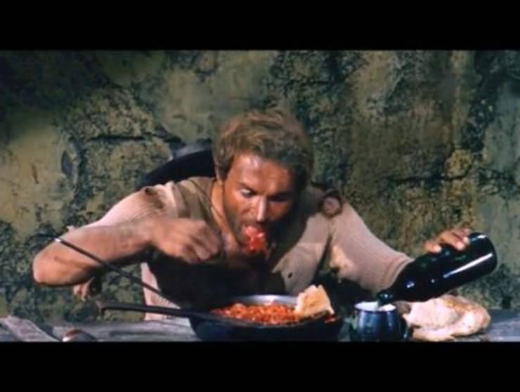 Come anticipato sono veramente moltissime le occasioni in cui vediamo gli attori mangiare oppure cucinare pietanza che sembrano veramente appetitose. Il cinema è pieno di scene che sono decisamente rimaste nell’immaginario collettivo come assolutamente immortali. Basti pensare soltanto ai film degli anni settanta ed ottanta che vedevano protagonista un duo immortale: quello composto da Bud Spencer e Terence Hill, le cui pellicole sono improntate praticamente alla buona tavola. Mangiare tanto è proprio la caratteristica peculiare dei loro personaggi senza la quale probabilmente perderebbero la loro goliardica attrattiva.