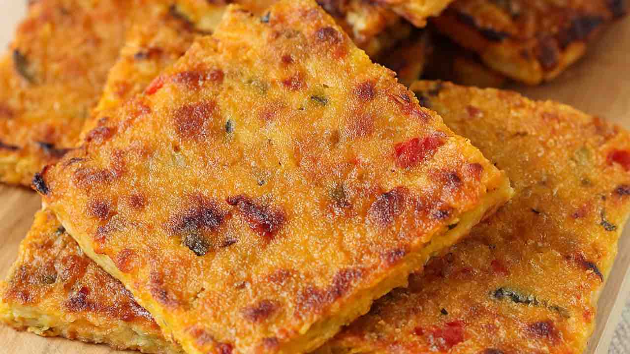 3. Prendiamo una teglia da forno e c infilalo con dell’ottimo olio di oliva. Versiamo il composto sulla teglia, ma fare attenzione a non creare uno strato doppio altrimenti la schiacciata viene mole. Stendiamo il composto sottilmente e cospargiamo con pangrattato e bagniamo con altro olio di oliva. Informiamo a 180 gradi fino a quando non sarà dorata e poi sforniamo, tagliamola a pezzetti e crack, un morso un piacere.