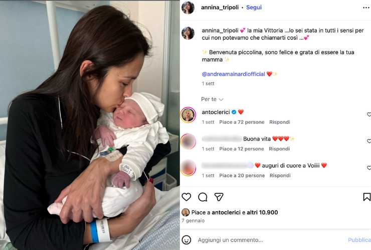 Infatti, proprio Anna Tripoli ha così presentato la figlia attraverso i social network, rivelando anche il nome: “La mia Vittoria… Lo sei stata in tutti i sensi per cui non potevamo che chiamarti così. Benvenuta piccolina, sono felice e grata di essere la tua mamma”.