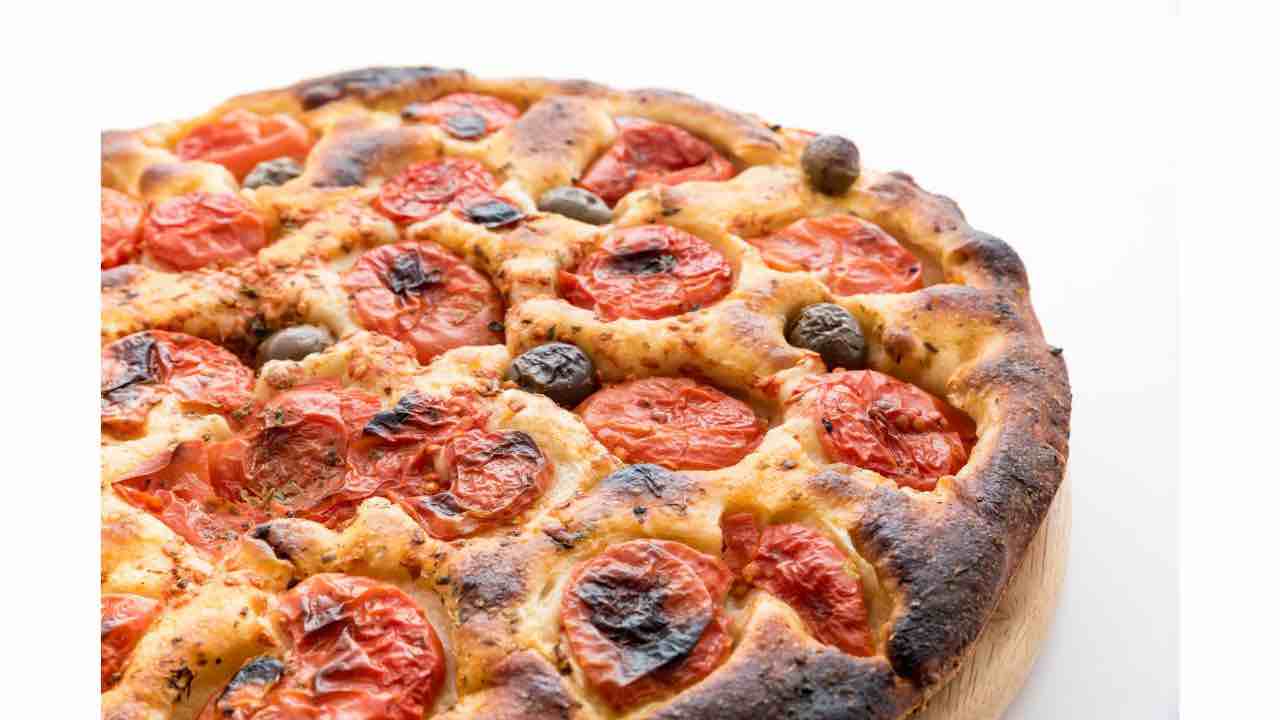 La focaccia barese con le olive è pronta: soffice dentro, croccante fuori e ricca di sapore. Un classico della tradizione pugliese che conquista al primo morso e profuma tutta la cucina di genuinità.
