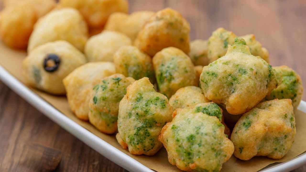 Come accennato, quando pensiamo al cenone della Vigilia, è fondamentale scegliere con cura le portate. Queste frittelle sono perfette per un aperitivo rinforzato, da servire almeno un’ora e mezza prima della cena vera e propria. Insomma, una vera chicca per sorprendere i tuoi commensali con qualcosa di buono e in grado di lasciare senza parole già dopo il primo morso. Gli ingredienti che ci serviranno sono pochi e semplici: