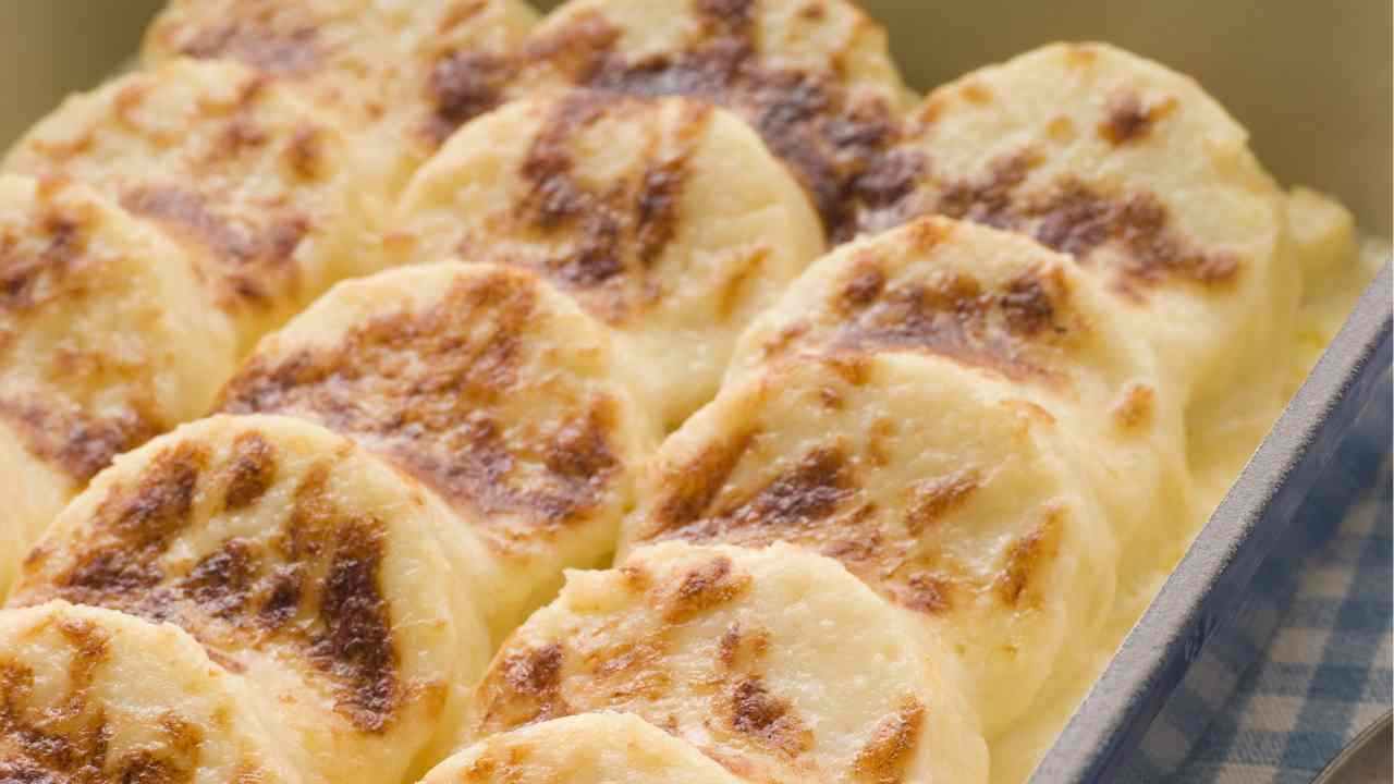 - Fate raffreddare completamente in frigorifero per mezz’ora, quindi con un coppapasta ricavate tanti dischi. Posizionateli in una teglia ben imburrata e metteteli da parte. Prendete un pentolino e scaldate il latte: quando vedrete comparire le prime bollicine, versate il burro ed il pecorino fresco grattugiato. Mescolate energicamente formando una salsa, quindi versatela sugli gnocchi.