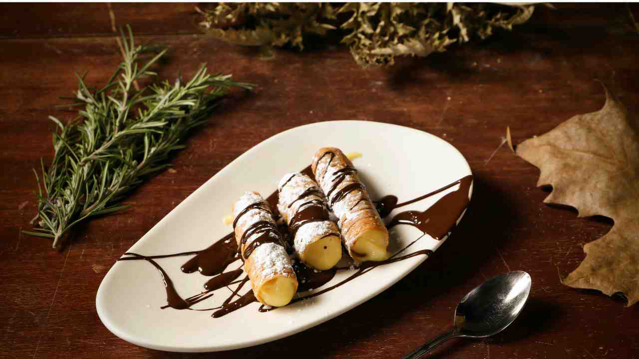 6. Lasciamo raffreddare i cannoli di pandoro e infine li farciamo con la crema di a base di ricotta e cioccolato riempiendoli bene facendo attenzione a non romperli. Possiamo o meno spolverizzarli con un po’ di zucchero a velo prima di servirli.