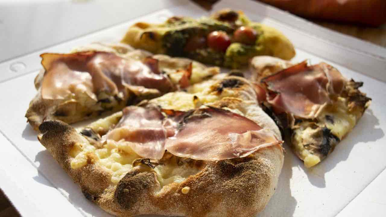 I funghi danno struttura e profumo, il prosciutto aggiunge sapidità. Insieme creano un equilibrio perfetto sulla base neutra della pinsa.