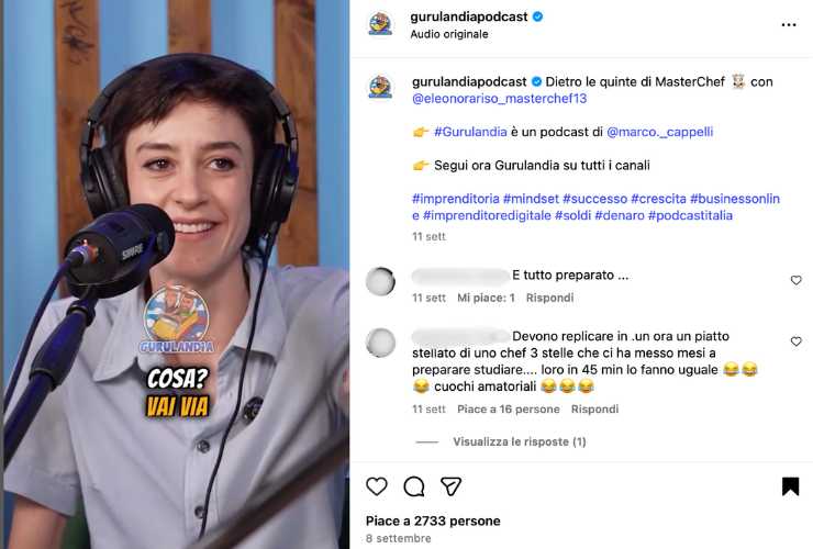 Le rivelazioni rilasciate da Eleonora Riso, però, hanno dato sfogo a una polemica inevitabile sui social network, un vero e proprio scambio di opinioni tra follower e fan del podcast Gurulandia oltreché appassionati del programma di MasterChef Italia.