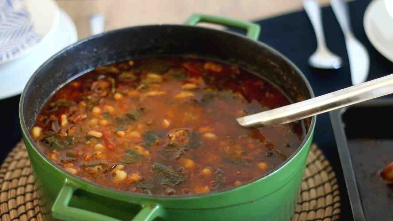 È una pentola che lavora di pazienza e di chimica domestica: le fibre devono cedere, gli amidi devono sciogliersi quel tanto che basta per dare corpo, i profumi devono fondersi senza diventare stanchi.
