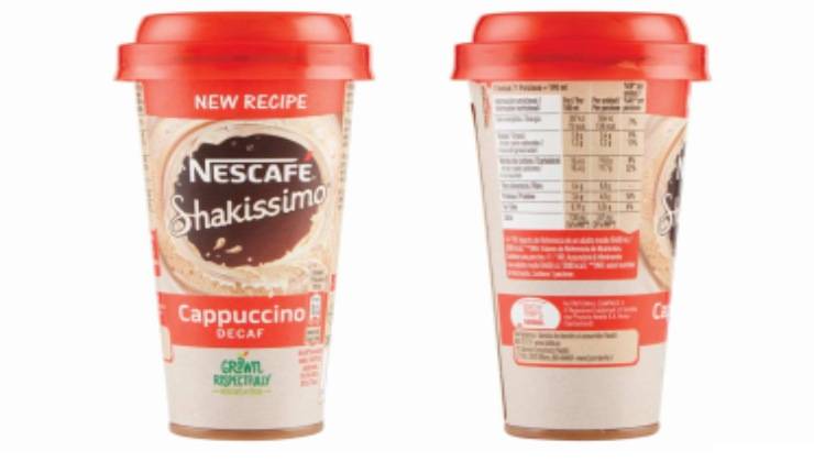- E Nescafé Shakissimo Cappuccino Decaffeinato: caffuccino decaffeinato al cacao, data di scadenza o Tmc 02/02/2021 (come il lotto), in vasetti da 190 ml;