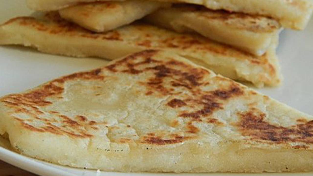 Pane di patate cotto in padella in padella, buono con 160 calorie. Procedimento