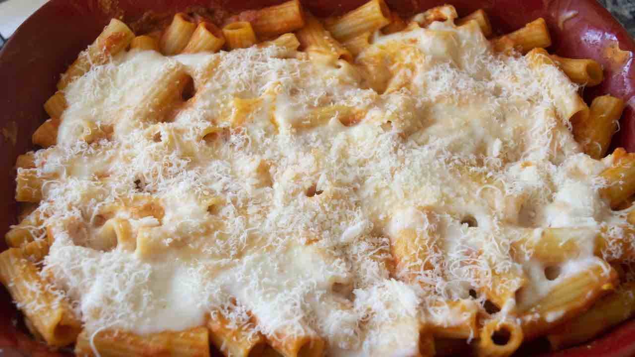 Lascia riposare qualche minuto prima di servire. La pasta al forno deve risultare compatta ma cremosa, pronta per essere tagliata a fette o servita a cucchiaiate.