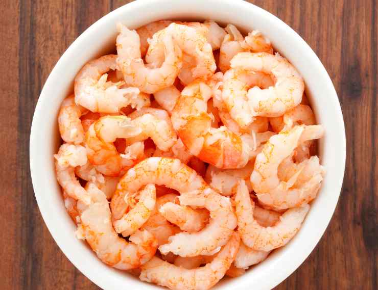 Iniziamo a pulire i gamberetti, togliendo loro la testa e il carapace. Poi sciacquiamoli delicatamente sotto acqua corrente.