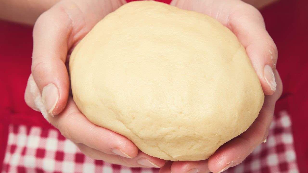 - Trasferire l’impasto su un piano di lavoro e compattarlo rapidamente fino a formare un panetto liscio.