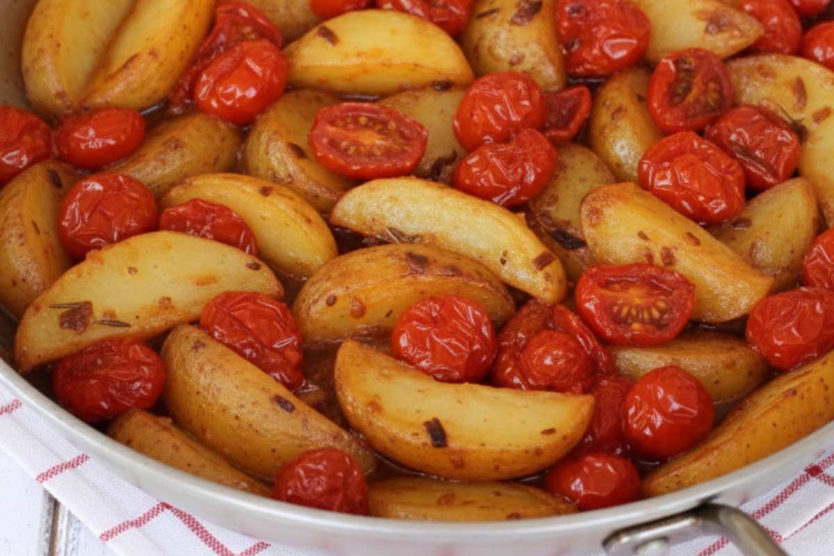 Patate croccanti e pomodorini in padella, il contorno che to salva pure a Capodanno