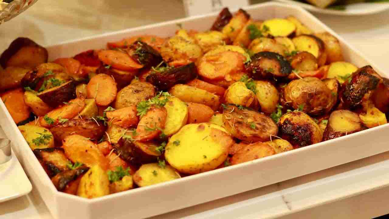 - Amalgamatele di tanto in tanto in modo che possano rosolarsi bene su tutti i lati. Fatto ciò distribuite qualche noce di burro sulla superficie e completate in funzione grill per 5 minuti per farle dorare ed abbrustolire ulteriormente. Servitele subito, saporite e profumatissime!