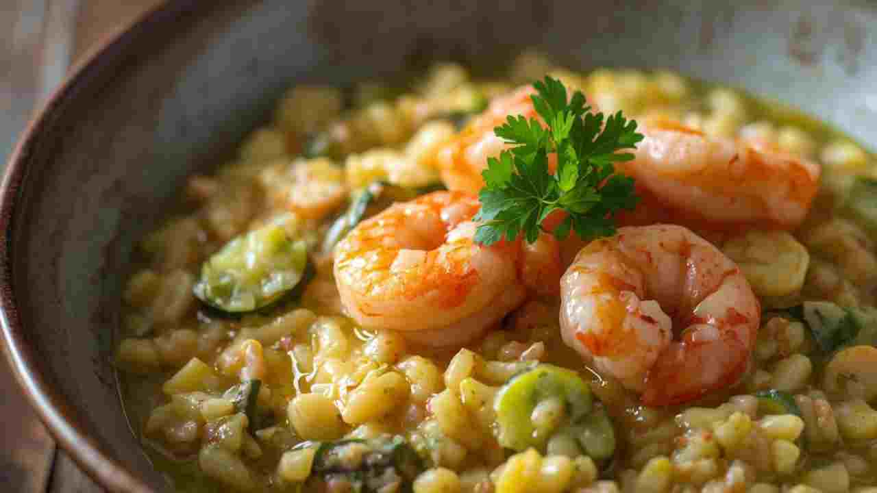 Per la cena della vigilia, un risotto cremoso e una soluzione perfetta ai frutti di mare. Con i gamberi e le zucchine, preparo un risotto cremoso delicato.