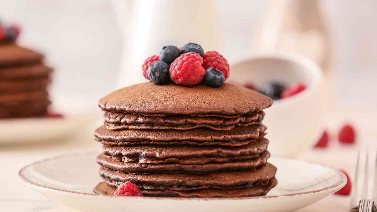Il cacao va scelto di buona qualità per ottenere un sapore pieno e non troppo amaro. Latte e uova contribuiscono alla consistenza soffice, mentre il lievito rende i pancake alti e ben gonfi. Una base semplice che funziona sempre.