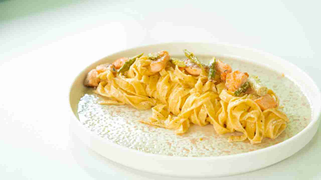 5. Saliamo l’acqua per la pasta quando bolle e mettiamo dentro i tagliolini. Per quelli freschi basteranno 5 minuti, se sono secchi ne calcoliamo almeno 3 o 4 in più, in ogni caso ci bastano al dente.