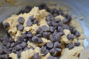 A questo punto unite l’uovo e la ricotta, un cucchiaio alla volta fino a che sia completamente assorbita. Infine unite un pizzico di sale e le gocce di cioccolato. Mescolate finchè l’impasto si stacchi dalle pareti e trasferitelo su una spianatoia leggermente infarinata.