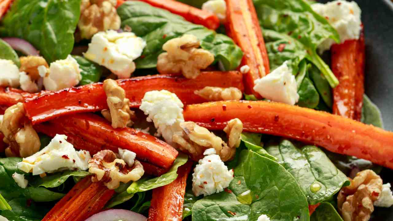 La base è fatta di carote crude, tagliate in modo originale e completate con un formaggio saporito ma anche della frutta secca. Davvero speciale.